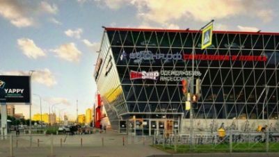 Новый павильон на парковочной зоне торгового центра Дунай. Строительство на стадии завершения, фасад соответствует соседнему павильо...