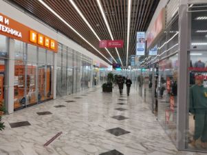 Новый павильон на парковочной зоне торгового центра Дунай. Строительство на стадии завершения, фасад соответствует соседнему павиль...