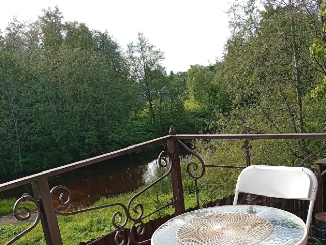 Дом с балконом и красивым видом на реку, сауна в доме и проектор включены в стоимость. Дом в деревне, территория полностью огорожена. По периметру ближайших соседей нет за забором, речка с двух сторон. На территории сдаётся ещё один дом. Пейзажное место недалеко от Копорья, есть свой небольшой лесок у речки. Отдельно стоящая русская баня на дровах, где можно хорошо попариться. Есть парная, помывочная,комната отдыха и открытая, но скрытая от глаз веранда. Предоставляются банные шапки, тазик, ковшики для воды, полотенца/простыни.Стоимость русской бани в будни 3500₽, в выходные и праздничные 4500₽. Вторые и последующие сутки 2500₽ 3-4 часа. Гости могут бесплатно воспользоваться "Местом под кленом"(индивидуальной зоной мангала и барбекю и романтической мини- беседкой с видом на реку. В общей зоне барбекю есть коптильня, печь ( уголь и розжиг берете с собой) и газовая плитка (турка для кофе там же, бокалы для глинтвейна в доме) За забором речка с двух сторон, с других сторон ближайших соседей нет, хотя дом находится в деревне. Тихо и спокойно. Сзади участка еще одна калитка, за которой свой маленький лес, выход на речку, а с другой стороны поле...см.фото