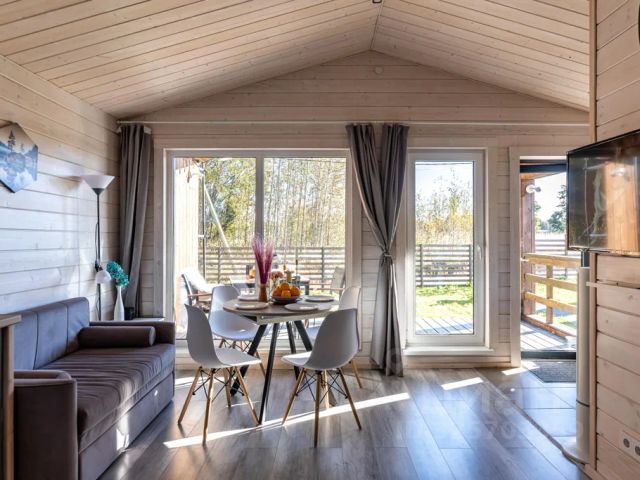 Сдается уютный дом с панорамными окнами, просторной открытой терассой с обеденной зоной. Баня-бочка квадро, мангал и костровая чаша. Безконтактное заселение. Можно с животными. Дом находится на территории коттеджного поселка Koрoбицыно LIFЕ в 4 км oт куpоpтoв Зoлотaя Дoлинa и Cнeжный, в 6 км - от Крaснoго oзeра. Мы ценим приватность наших гостей, поэтому у нас организован самостоятельный заезд. Весь дом, терраса, парковка на 2 машины, баня квадро (за доп. плату), мангальная и костровая зоны на участке 7 соток полностью в Вашем распоряжении. Участок огорожен с 3 сторон (со стороны парковки забора нет). В доме 2 отдельные спальни с кроватями 160*200 см, ортопедическим матрасом и 2 одеялами. В кухне-гостинной раскладной диван 120 см. Оснащение дома: - Полный комплект бытовой техники (эл. плита, небольшой холодильник, микроволновка, посудомоечная машина, стиральная машина, бойлер) - Раскладной обеденный стол - Набор посуды на 6 чел, кастрюли, сковородки, штопор, открывашка, сырорезка - Фильтр для воды - Чайник - Рожковая кофеварка (молотый кофе возьмите с собой) - Чай, сахар, соль, перец - Wi-Fi - Телевизор с подпиской КиноПоиск и Окко - Умная колонка Яндекс Станция Миди - Настольные игры - Полотенцесушитель - Фен - Сушилка для обуви - Полотенца, комплект постельного белья, в ванной комнате - т/бумага, жидкое мыло, шампунь и гель для душа - Пледы - Тёплый пол по всей территории дома На улице: - Баня квадро (доп. +5500) - Крытая терраса у дома с обеденной зоной - Качель-кокон - Мангал - Костровая зона с очагом и удобными креслами - Парковка на участке на 2 машины В целях безопасности на участке ведется видеонаблюдение Условия: Выезд до 12.00 Заезд после 15.00 Безконтактное заселение (электронный замок). Залог 5000 руб. возвращается после уборки и проверки дома. Баня квадро (Эл) +5500 руб Животные (1000-3000 руб за каждое) Возможен ранний заезд / поздний выезд за доп.плату при наличии свободных дат. Запрещены шумные вечеринки, курение в доме (в т ч. электронные сигареты и вейп) Мы просим при выезде вымыть посуду (есть посудомойка), шампуры (если использовали), вынести весь мусор. Штраф 1000 руб Бронируя, Вы подтверждаете, что ознакомились с правилами проживания.