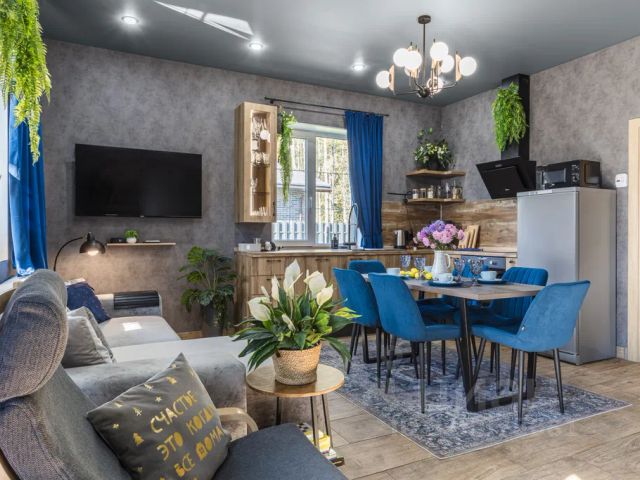 - Полноценная кухня (чайник, холодильник, посудомоечная машина, духовой шкаф, плита электрическая, микроволновая печь.