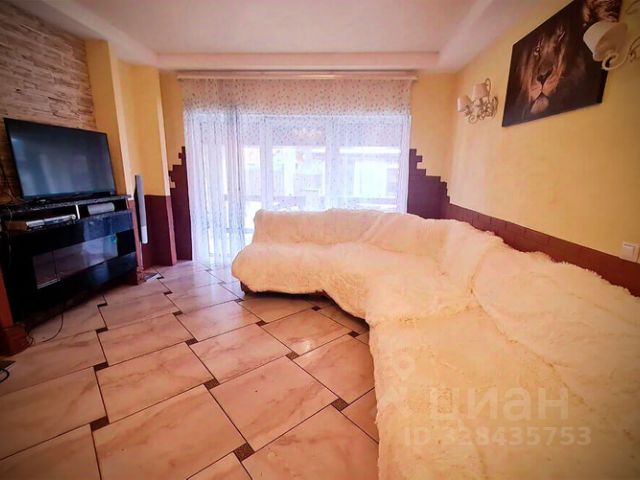 Первый этаж: гостиная 64 м кв. (большой стол, кухня, огромный бежевый кожаный диван с камином, колонки с ауксом, 46 дюймовый телевизор), ванная комната с джакузи и биде, спальня, открытая терраса.