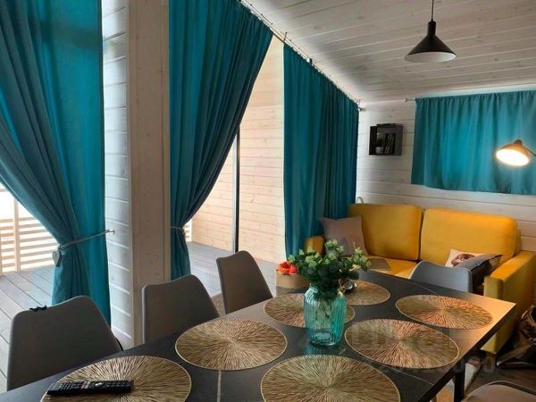Дом отдыха расположен в Ленинградской области. Здесь имеются все условия для комфортного проживания — баня, сауна, массаж, spa, настольный теннис, площадка для пикника, детская площадка. Недалеко расположен пляж. Любители рыбалки будут довольны — рядом есть места для ловли рыбы. В номерах есть холодильник, телевизор, фен, утюг, посуда, чайник, микроволновая печь, посудомойка, кухонная плита, отопление, терраса. В доме отдыха есть Wi-Fi. К вашим услугам также: прачечная, уборка, ускоренная регистрация заезда/отъезда, массаж, верховая езда. Дом имеет 2 изолированные спальни с панорамными окнами площадью по 9 кв.м. В каждой спальне двуспальная кровать, стеллаж под одежду, прикроватная лампа и шторы блэкаут. Просторная кухня -гостиная 21 кв.м с панорамным видом на террасу и удобным кухонным модулем включающий в себя: варочную панель, микроволновую печь, чайник, холодильник на 93л, раковину и посуду для приема и приготовления пищи на 6 гостей. В гостиной зоне расположен раскладной диван, обеденный стол и стулья, камин, плазменный телевизор и игровая приставка Денди. Небольшой санузел в котором уместилось все необходимое: Ванная/ душевая кабина, унитаз, раковина на тумбе с зеркалом, фен, гигиенические принадлежности и средства, по 2 полотенца на каждого гостя. Все комнаты оснащены москитными сетками. Терраса с панорамным видам в кронах молодых осин. Терраса площадью 15 кв.м оборудована деревянным столом и скамейками со спинкой, гамаком, розетками и освещением по периметру и зонам. У каждого коттеджа расположена освещенная мангальная зона с уличной мебелью, пространство зонировано ландшафтом и растениями.