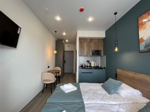 Вход в апарт-отель возможен через бесконтактный доступ по коду. Все 32 меблированных апартамента категорий "Одноместные апартаменты", "Двухуровневые апартаменты", "Стандартные апартаменты-студио", "Апартаменты-студио трехместные" и "Двухуровневые трехместные апартаменты" представляют собой комфортные студии с индивидуальным дизайном. Светлый и уютный интерьер апартаментов располагает к отдыху после деловых встреч и культурных прогулок.