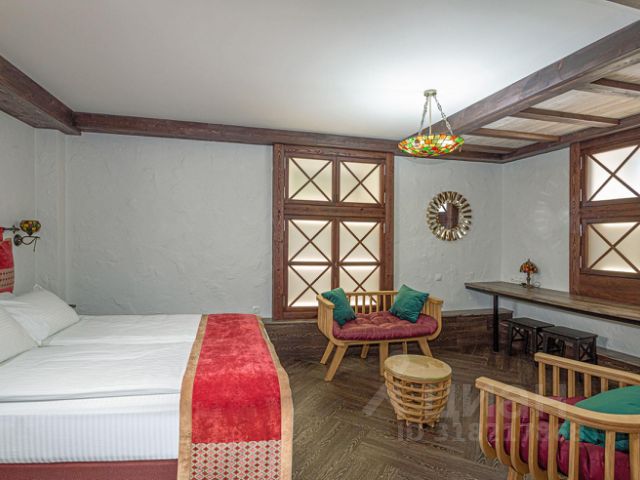 База отдыха "Vyritsa Village" - это закрытая территория с вековыми деревьями площадью 90 соток, существующая в полной гармонии с природным ландшафтом на заводи берега реки Оредеж, всего в 50 км от Санкт-Петербурга. Добраться до базы удобно как на машине, так и своим ходом. Электрички следуют от Витебского вокзала до ж/д станции "Поселок". В пути примерно 1,5 часа. База отдыха рассчитана на одновременное пребывание до 60 человек. К услугам гостей старинный загородный дом, гостиница с номерным фондом, два таун-хауса и два коттеджа. В каждом номере имеется посуда, чайник, косметические средства, полотенца, тапочки, так же имеется бесплатный wi-fi. Все удобства находятся в номере. На территории располагается русская баня, купель, две открытые беседки, мангалы, детская площадка с веревочным городком и батутом, кафе "Veranda", а также любимый уже многими гостями — NE зоопарк. Улучшенный двухместный номер с двумя комнатами: спальней с двумя раздельными кроватями и небольшой гостиной с диваном, в номере имеются большие панорамные окна, что делает его светлым и уютным. Вмещает до четырех человек. В номере есть все необходимое для комфортного отдыха: телевизор со спутниковым телевидением, бесплатный Wi-Fi, чайник, банные полотенца, косметические средства, фен, тапочки.