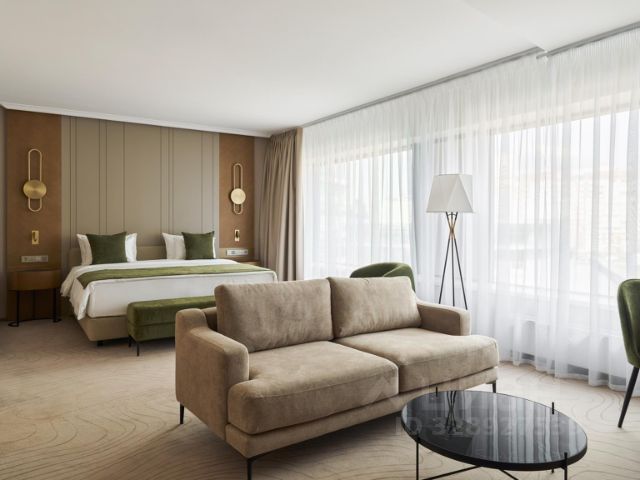 Номерной фонд отеля состоит из номеров разных категорий, площадью от 35 м2. Все номера оборудованы комфортабельной мебелью, современным оборудованием, имеют доступ к высокоскоростному Wi-Fi и IP-TV.