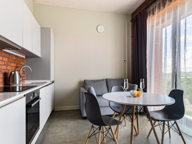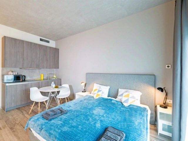 В апартаментах есть все необходимое: двуспальная кровать Queen size (180см*200см) с удобнейшим матрасом, кондиционер, широкоформатный телевизор с цифровым телевидением, Wi-Fi, обеденная группа, плита, микроволновая печь, холодильник, чайник, посуда, столовые приборы, капсульная кофемашина Nespresso c набором капсул, гардеробная с утюгом и гладильной доской, тапочки, ванная комната с феном, стиральной машиной, гигиеническими принадлежностями и набором полотенец.