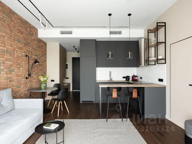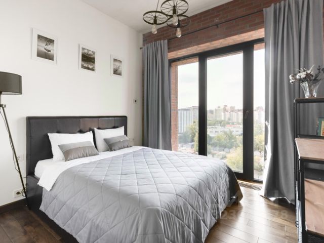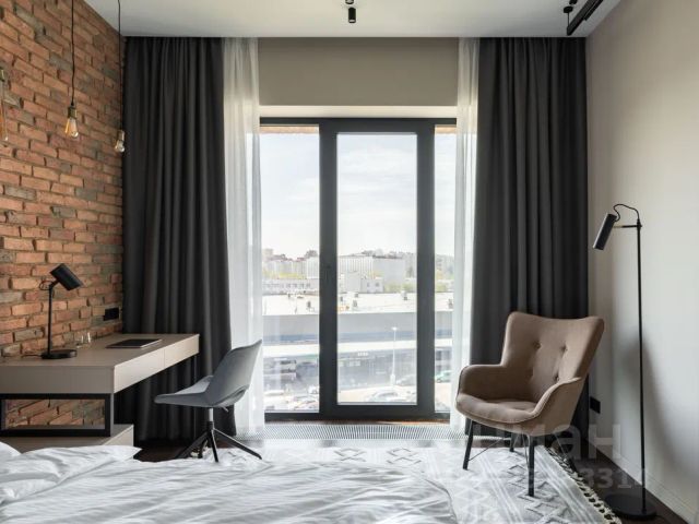 Высокие потолки, панорамные окна, отделка одной из стен клинкерным кирпичом, безупречная звукоизоляция, климатконтроль.