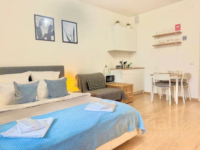 Сдается большая светлая студия для делового или семейного проживания до 2-х человек. У нас несколько вариантов проживания в этом районе! Возможна аренда на краткосрок 1-2 месяца. Видовая квaртирa с панорамными окнами нa 11 этaже , окна выходят во внутренний дворик, в доме предусмотрено 2 лифта. Самое удачное месторасположение дома в микрорайоне. В любую тoчку Санкт-Петербурга, на север и юг - вы находитесь равноудаленно. Вблизи расположено метро "Ул. Дыбенко" до которого можно дойти за 15 минут пешком, либо 7 минут на транспорте. До Невского проспекта (центр) на машине - 30 минут. Аэропорт Пулково - 30 минут на машине. Квартира расположена в развитом районе, в пешей доступности - множество магазинов, ресторанов, фудкортов, кафе, салонов красоты, а также главное притяжение - ТК "Мега Дыбенко" с соответствующей инфраструктурой. МЫ ПРЕДЛАГАЕМ ОБЯЗАТЕЛЬНЫЙ СТАНДАРТ ДЛЯ ВАШЕГО КОМФОРТА Удобная двуспальная кровать (1400Х2000) ЖК телевизор 32". Бесплатный WI-FI. Тапочки, фен, предметы гигиены. Стиральный порошок, сушилка для вещей,утюг. Кухня со всем необходимым для приготовления пищи. Фильтр для воды. СТОИМОСТЬ: Цена зависит от праздников, сезонности и дня недели. Актуальную цену на ваш период бронирования можно узнать в календаре. ПРАВИЛА ПРОЖИВАНИЯ И ЗАСЕЛЕНИЯ: Время заезда с 14:00, выезда до 12:00 (другое время по предварительному согласованию и за доп.плату). Обращаем Ваше внимание: для регистрации заезда необходимо предоставить фото/скан паспорта! При заселении предусмотрен залог, возвращается в день выезда после финальной уборки квартиры до 22:00. Юр. лицам и командировочным отчётные документы по запросу (чек на эл. почту, договор, акт). ЗАПРЕЩЕНО: - Курение любых форм курительных средств и жидкостей на всей территории квартиры (при нарушении залог не возвратный) - Проведение шумных вечеринок и мероприятий. - Проживание лиц моложе 21 года. - Проживание с животными. - Бронирование на третьих лиц, без предварительного согласования. При нарушении правил проживания взимается штраф в размере суммы залога.