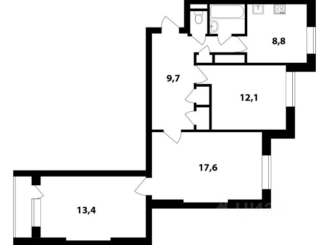 От года, 60 000 ₽ + 10 000 ₽ комм. платежи (счётчики включены), без комиссии, залог 60 000 ₽