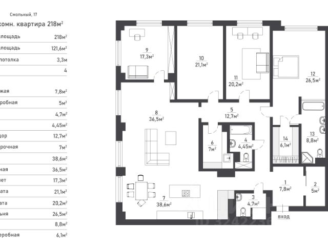 Новая 5комнатная квартира в историческом центре СПб: виды на Неву, мост Императора Петра Великого и Смольный собор. Квартиры идеально подойдёт для дружной и большой семьи. Собственник. Сдаётся на срок от 364 дней. Представляем вашему вниманию роскошную 5комнатную угловую квартиру в престижном ЖК Смольный проспект - в сердце исторического Петербурга. Это не просто жильё, а пространство для жизни, вдохновляющее величием города. Ключевые преимущества: Уникальные виды: из 8 окон открываются панорамные пейзажи: - 4 окна (мастерспальня, детская, игровая, кабинет) - на Неву и мост Императора Петра Великого; - 4 окна (гостиная, кухнястоловая, кабинет) - на Смольный собор и здание Правительства Петербурга. Дизайнерский ремонт: использованы премиальные материалы - английский паркет, немецкая кухня с техникой Miele и Liebherr, сантехника Grohe и Laufen. Комфорт и безопасность: шумоизоляция, профессиональное центральное кондиционирование, закрытый охраняемый двор. Инфраструктура двора: детский сад, ясли, развивающие кружки, детская и спортивная площадки, озеленение по авторскому проекту. Паркинг: Доступно отдельное парковочное место на -1 этаже. Супер удобное место для семьи с детьми. Планировка: - 3 спальни (возможно 4 спальни за счёт кабинета); - кабинет (опционально); - гостиная, совмещённая с кухнейстоловой; - 3 смежных санузла; - 2 гардеробные; - постирочная с местами для хранения вещей. Локация: ЖК расположен в исторической части города (правительственный квартал) - вся необходимая инфраструктура в пешей доступности. Это идеальное место для тех, кто ценит сочетание престижа, комфорта и духа Петербурга. Условия аренды: долгосрочная аренда (от 364 дней); возможность укомплектовать детские комнаты по договорённости; декор (картины, цветы, фотографии) - на ваш вкус. Свяжитесь с собственником, чтобы обсудить детали и договориться о просмотре! NAVspb