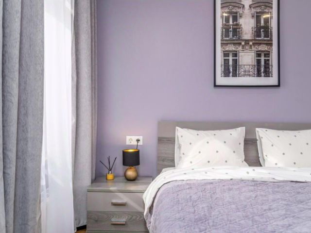The apartment is cozy and comfortable, with a beautiful view from the large windows. The windows face south, making it bright. Blackout curtains keep it dark. It's quite warm in winter, and there's an additional heater. Appliances include a refrigerator, stove, oven, microwave, kettle, all dishes, and a washing machine. There's no dishwasher.