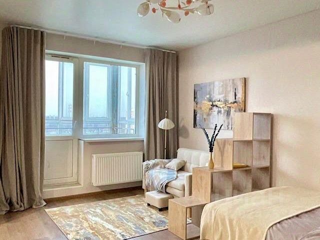 Уютная студия в доме премиум 2020 г., на 16 этаже с замечательным обзором. В квартире сделан ремонт, есть всё для комфортного проживания, кухонная мебель, кровать, тумба прикроватная, под телевизор. Из техники: телевизор, стиральная машина, посудомоечная машина, микроволновая печь, холодильник.