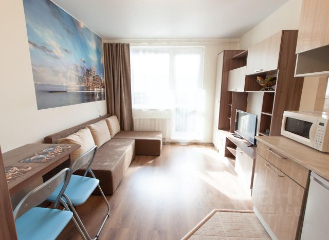 Сдается уютная студия в новостройке в современном жилом комплексе по адресу: проспект Авиаторов Балтики, 29к2. Квартира расположена на 2 этаже 19-этажного монолитного дома, построенного в 2023 году. Общая площадь квартиры составляет 25.94 кв. м, а жилая — 17.77 кв. м. Высота потолков — 2.6 метра, окна выходят во двор, что обеспечивает тишину и комфорт. В квартире выполнен качественный евроремонт, установлена вся необходимая мебель как в комнате, так и на кухне. Для вашего удобства есть диван-книжка, раздвигающееся кресло, холодильник, духовой шкаф, индукционная плита на 2 конфорки и стиральная машина с функцией сушки. Ванная комната оборудована душевой кабиной. Очень просторная лоджия, на которой располагается ещё один шкаф для ваших бытовых вещей. В квартире проведен интернет, поэтому вы всегда будете на связи. Дом оборудован двумя пассажирскими и одним грузовым лифтами, поэтому можно не беспокоиться о комфорте подъема даже с тяжелыми покупками. Во дворе предусмотрена удобная парковка. Дом и подъезд содержатся в отличном состоянии. Район отлично развит: рядом находятся школы, детские сады и магазины, поэтому все необходимое для жизни будет у вас под рукой. До метро "Девяткино" всего 6 минут на автомобиле, что делает поездки в центр города быстрыми и удобными. Совсем рядом остановка маршруток. Аренда от собственника. Без комиссии. Подходит для одного-двух человек. Залог — 100%, можно разделить на 2 месяца. Коммунальные платежи оплачиваются отдельно (около 3-4 тыс. рублей) Приглашаем вас на просмотр этой квартиры :)