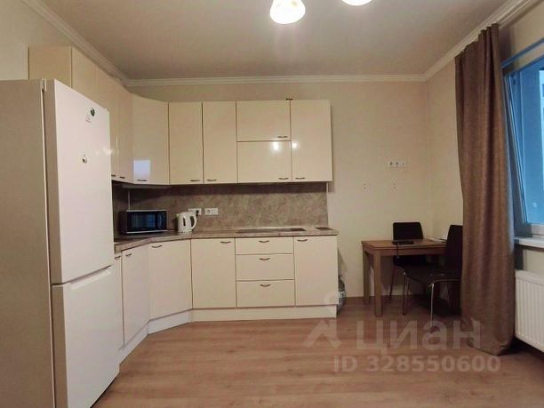 На кухне установлена вся необходимая техника: индукционная плита, вытяжка, СВЧ, чайник. Есть посуда для приготовления и приёма пищи.