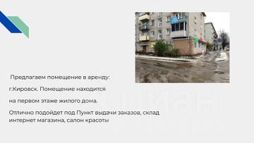 Предлагаем помещение в аренду:г.Кировск. Помещение находитсяна первом этаже жилого дома.Отлично подойдет под Пункт выдачи заказов, склад интернет магазина, салон красоты, а так же розничной торговли