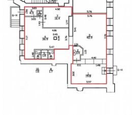 Помещение - цоколь (не подвал!), заглубление 0.8м. В помещении 2 окна, 1 вход. S=56,8 м2.