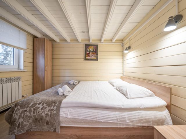 Загородный клуб Ромашка с рестораном и садом расположен рядом с пляжем в поселке Ромашки. Город Приозерск находится в 50 км от загородного клуба Ромашка, а поселок Сосново — в 34 км от него. До аэропорта Пулково 148 км, до железнодорожной станции 20 км. Коттеджи на базе отдыха оснащены телевизором с плоским экраном, в некоторых из них обустроена кухня с посудомоечной машиной. Во всех номерах в распоряжении гостей чайник и собственная ванная комната с душем и феном. В каждом доме базы отдыха гостям предоставляются полотенца и постельное белье. В числе удобств — детская игровая площадка. На территории обустроена парковка. Гости могут взять напрокат лыжное снаряжение. В поселке Ромашки и окрестностях можно заняться различными видами активного отдыха, в том числе лыжным спортом и рыбной ловлей. На территории базы ест русская баня и бильярд. Гостиная-кухня: диван угловой раскладной, TV, журнальный столик (раскладывается в обеденный стол), шкаф для одежды, совмещенный санузел (душевая кабина, унитаз, раковина, фен), микроволновая печь, электрическая плита, холодильник, электрический чайник, комплект обеденной посуды и приборов на 6 человек (кастрюля — 2 шт., сковорода — 1 шт., поварешка — 2 шт.), 4 стула. Спальня 1: двуспальная кровать 180х200 Спальня 2: 2 кровати односпальные Прилегающая территория: детская песочница, мангальная зона, веранда (стол+4 стула), охраняемая стоянка для автомобилей.