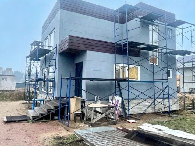 Двухэтажный дом построен по каркасной технологии в современном архитектурном стиле. Просторные помещения благодаря панорамным окнам всегда будут наполнены светом и воздухом.