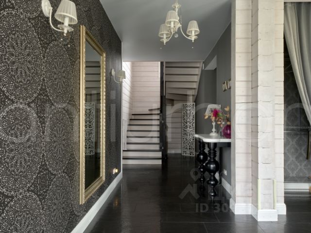 -Дизайнерский интерьер в коттедже выполнен в современном стиле.